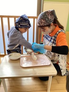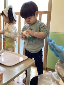 「😆自分でやりたい!」と1人で挑戦するお友達もいましたよ✨