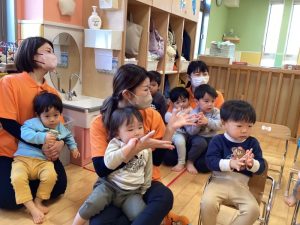 「おにぎりにぎにぎ食べてみな〜🎶」という楽しいリズムに合わせて身体をゆらゆらと動かしていましたよ✨