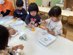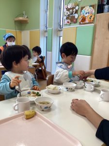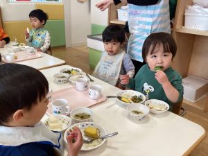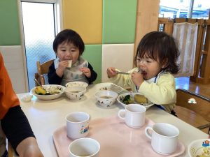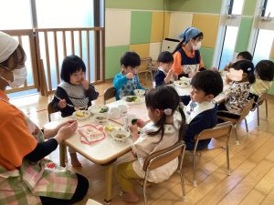 戸外から帰ってきた子どもたちはお腹がぺこぺこです😋