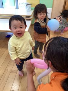 細長い風船の形が少しずつ変わっていく様子に子ども達も夢中になっていました💕