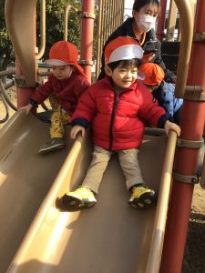 滑り終わった後に顔を見合わせて嬉しそうに笑ったりお友達と「もう一回やろう!」とお話したりしながら仲良く遊びを楽しんでいます☺️🎶