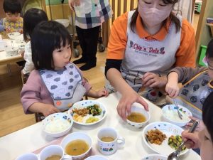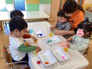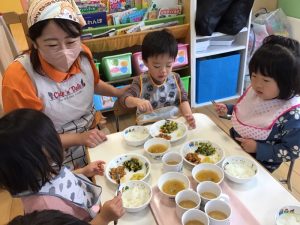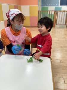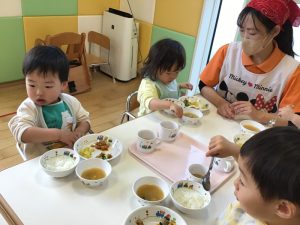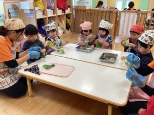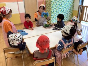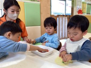 さて、今週のブログはりんご組さんの食育活動🍽️といちご組さんの製作活動🖍️のご様子をお伝えしたいと思います🍀