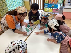 朝の会で子ども達にお天気を聞くと「It’s Sunny☀️」という元気な声が保育室に響き渡りましたよ😊