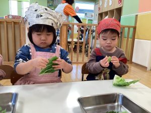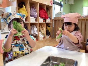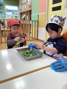 ちぎったキャベツを調理室まで持って行くお手伝いもしてくれましたよ❣️
