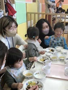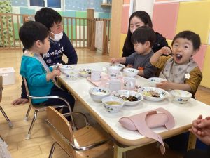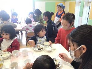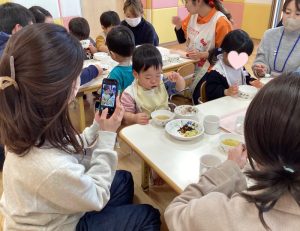🎶たくさん遊んだ後は、子どもたちの大好きな給食の時間です🍽️💕