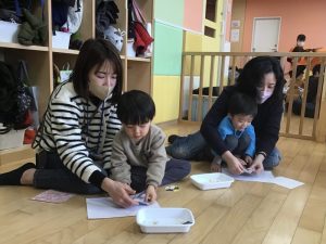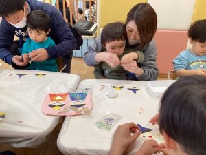 楽しいゲームの後はひな祭りへ向けて製作活動をしました🎎✨