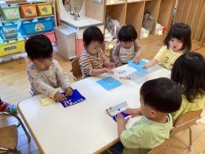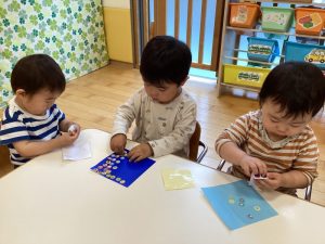 先生の説明を聞いてから早速シールを貼っていきます🌼💕
