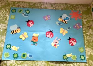 今回、ご紹介したもも組さん、いちご組さんの作品とこれから製作予定のりんご組さんの作品は、エントランスに飾りますので楽しみにしていてください🍀