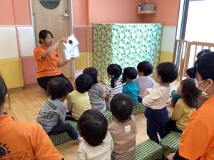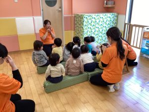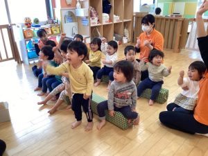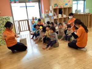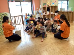 最初はみんなで「はじまるよ」の英語版を歌っています🎶