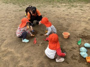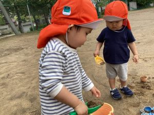 いちご組さんは広場で砂遊びを楽しみました🪣✨