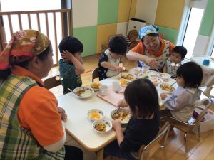 サンライズキッズ都賀園では、毎日調理員の方が美味しい給食、おやつを手作りしています💗
