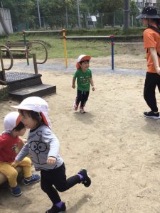 保育者やお友達と追いかけっこを楽しんでいますよ😊💨