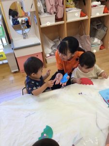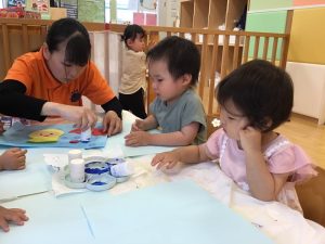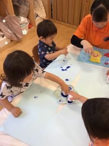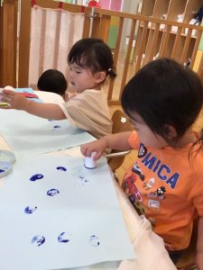 スタンプを手に持って「どこにしようかな?」と迷いながら慎重に1つずつ押しているお友達もいましたよ👏✨✨