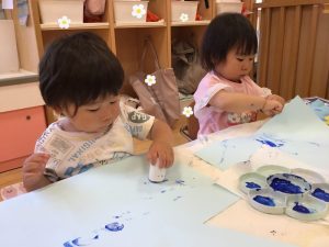 初めてのスポンジスタンプを使った製作にチャレンジ😊❕