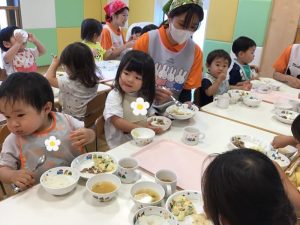 あっという間に完食してしまう子もいれば苦手な野菜に少し苦戦している子もいたりと反応は様々でしたが自分たちで育てたきゅうりに特別感を感じながら味わって食べていました💗