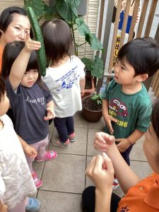エントランスに出るたびに「きゅうりさん元気かな?」「水やりしたい!」と生長を観察しながら率先して水やりをしてきた子どもたち✨
