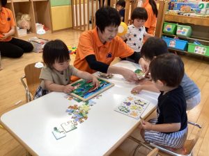 🧩パズルでは少し難しいところもありますが、先生と一緒に粘っていますよ☺️💗
