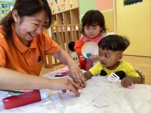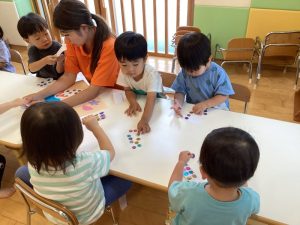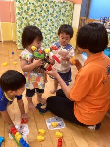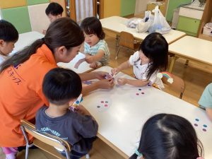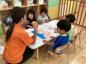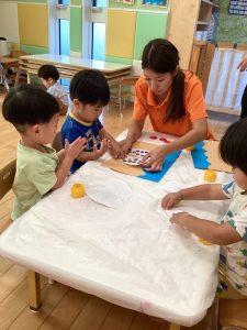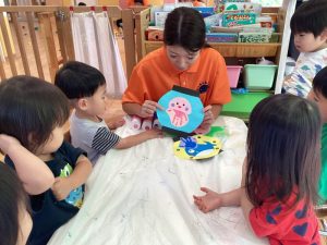 そんな中でも子どもたちは大はしゃぎで水遊びを楽しんだり、涼しいお部屋の中で友だちと一緒に夏祭りに向けて盆踊りの練習をしたりと保育園での生活を楽しんでいます🎶