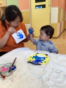 😳見て見て!黄色の手になったよ!綺麗に手形できた😍
