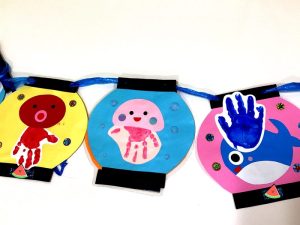 全クラスで提灯🏮を作りました😍くらげ🪼、タコ🐙、くじら🐳を手形で表現しました✨✨