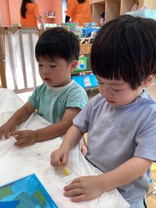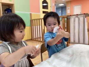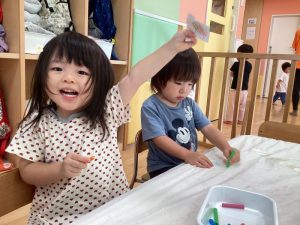 最初は指に絵の具がつくとビックリしてしまう子もいましたが😳💓