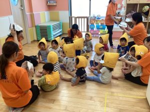 まずは紙芝居を見て地震とは何なのか、発生した時にはどうするのかをみんなで一緒に考えましたよ👀✨
