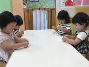 シール貼りが大好きないちご組さん🔴🟡