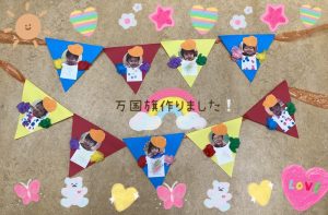 全クラスで万国旗を製作しました✨🤗✨