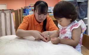 👩🏫「一緒にペタペタしようね❣️」