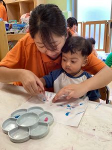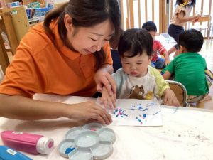 先生と一緒に絵の具の感触を楽しんでいましたよ😌💗