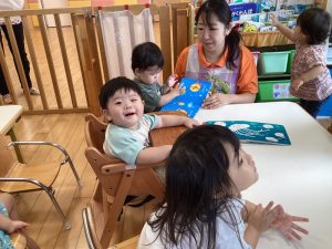もも組のお友達も少しずつ朝の会の絵本読みに参加できるようになってきていますよ🎶