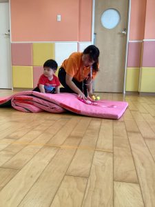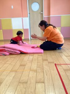ハイハイレースは普段体操のカリキュラムで使用しているマットを使い、ハイハイでのぼってゴールを目指します😆✨