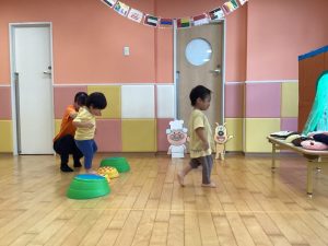 ジャムおじさんのパン工場からいい匂いが☺️‼️美味しそうなパンが焼けたようです🥐❣️みんな大好きな先生のところまで障害物を乗り越えてパンを持って帰ってきてね💗