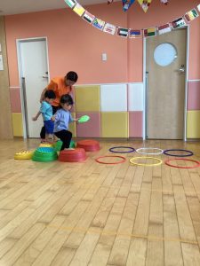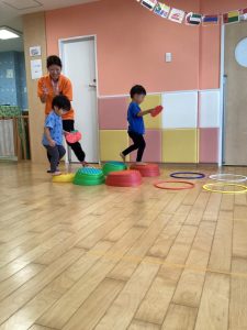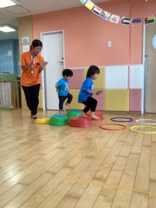 平均台、両足ジャンプ❕をしてどんどん進みます😆☀️