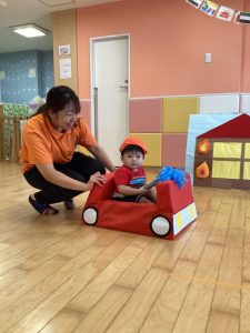 消防隊に変身して消防車に乗って消化活動開始❗️