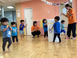 🎶練習中から先生の真似っこが得意な子どもたちは、大はしゃぎ❣️最後は盛り上がりすぎてみんなどこに行っちゃうの〜😳💦と誰も前からいなくなる日もありましたが、、、、