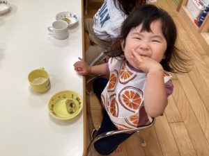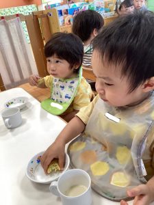 そしてこの日のおやつはみんな「お団子がいい〜😆」とお話していましたが、「🌕お月見スイートポテト」でした🙌🎶