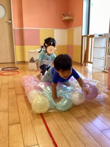 最後にお楽しみの風船マットを越えて先生にゴール😆😆✨