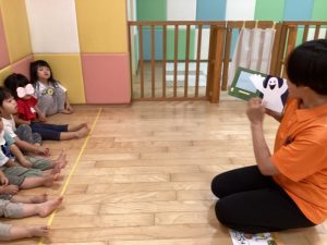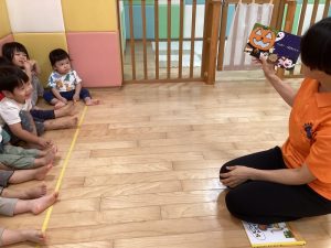 ハロウィンならではの登場人物に驚くお友達もいましたが、最後まで真剣に見入っていました!👀