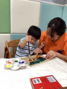 先生と一緒に筆を持ってぬりぬり…🖌️