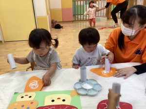 本物のきのこに見えたのか「おいしくなーれ❕」と言いながらスタンプするお友達もいましたよ😋