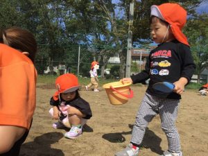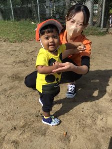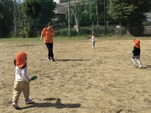 先生達からの「😊まってまって〜❕」の声を聞きながら笑顔で逃げていく様子に周囲のお友達も思わずクスッと笑って嬉しそうにしています✨