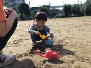 食べる真似をすると「美味しいね💗」と言って砂のおかわりをたくさん持ってきてくれますよ😆💓