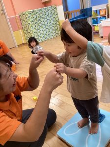 手足をパタパタと動かしたり可愛らしい声を出したりして「やりたい」という気持ちを伝えてくれました💕