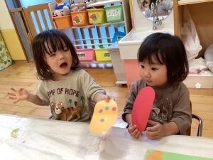 最近ますます言葉数が増え、お喋りを楽しんでいる子ども達、お友達を応援したり作品を褒め合ったりする姿も見られました💗