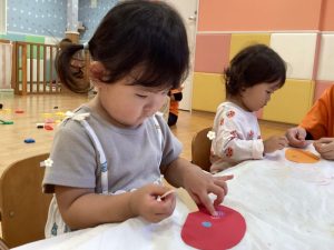 数字に興味があるお友達は貼ったシールを1つずつ指差ししながら「1.2.3…」と数を数えていました👀✨✨