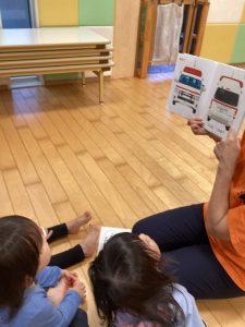 「これは道路パトロールカーだよ❣️」乗り物博士なりんご組さんたち😊 終始楽しそうな様子でした👀💕💕 都賀園では遊びの中だけでなく、活動の切り替えの際に気持ちを落ち着かせてから 次の活動に移れるようにする為にも絵本を読むことを心掛けています✨✨ 子どもたちのその日の気分や様子に合わせて読み聞かせができるように 引き続き心掛けて行きたいですね🎶 それでは今回の絵本ブログはここまでです🌞 次回の絵本ブログもお楽しみに〜🎃✨ ※来週は都賀園の様子の園ブログとなっています❣️ そちらも是非チェックしてくださいね👀✨