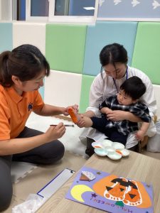 おもちゃ作りではシールで飾り付けしてハロウィンのおもちゃを作りました💓