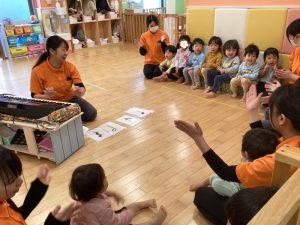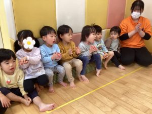 子どもたちに「くろ」の音はどんな音かな?と聞くと手を叩いて「くろ!くろ!くろ!くろ!」と元気よく答えてくれましたよ🎶