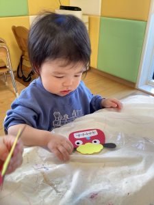 🧐どこに貼ろうかな?ここかな?と考えながら貼る子や勢いよく貼っている子など様々でみんな思い思いに作っています🎶
